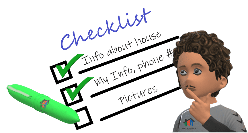 Have you ever wondered what you should be doing to maintain your log home? Or are you looking for a guide to help you decide when to hire a log home restoration company to provide log home maintenance? Either way, Log Masters has the answers! After repairing and restoring log cabins for decades, we have learned the ins and outs of log cabin care. Quick Log Home Maintenance Checklist Before requesting a restoration estimate, we recommend all log homeowners inspect their log home for the following. Throughout the post, we will explore how to perform this maintenance checklist in depth. Rot or Decay: Soft spots, discoloration, or spongy wood on logs Cracks and Checks: Large or upward-facing cracks that may collect water Fading or Staining: Worn or discolored log finishes Sealant Issues: Gaps in chinking or deteriorating caulking around doors and windows Moisture Concerns: Poor roof overhangs, clogged gutters, or improper drainage Insect Damage: Holes, sawdust, or signs of carpenter bees or other pests Overgrown Landscaping: Vegetation or trees touching the logs, trapping moisture Foundation Grading: Ensure water flows away from your home Step 1: Please Check for Log Rot Log rot is a type of decay that occurs when fungi feed on wood. To check for log rot, use a steak skewer (or paint roller stick on a pole for high areas) to poke the logs. Solid logs are safe, but soft logs where the skewer sinks in are not. Note exactly where and how far into the log the skewer goes, then test these same logs to listen for hollow sounds when knocking the side of the log with a hammer. Hollow logs can also be an indicator of log rot. Log rot can appear anywhere on log homes. That being said, we highly recommend all homeowners check the following areas that are more susceptible to log rot: Area surrounding your window and door frames Logs near the ground (especially if the log height above the ground is below a foot) Areas that regularly receive shade Logs around your downspouts Posts or columns on the front or back porches All walls (west and south-facing walls get the most rain, while east and north-facing walls can struggle to dry out) Decks and porches Take notes and photograph any possible signs of log rot you discover. When you submit your estimate request, you can share these images and notes with us. Step 2: Inspect for Cracks and Checks Cracks, also known as checks, naturally occur as logs age and dry. However, larger or upward-facing cracks can trap water, leading to potential decay. Use a flashlight to inspect your logs for cracks closely. As you inspect, make note of any cracks wider than 1/4 inch or deep enough to hold water. Also, pay special attention to cracks facing upward, as they are more likely to collect moisture. When looking for cracks, focus your inspection on these areas: Logs around windows and doors The tops of logs on horizontal surfaces, like railings or porch beams Areas exposed to consistent rainfall or snow accumulation Take photos and measurements of any significant cracks to include with your restoration estimate request. Step 3: Assess for Fading or Stain Failure The finish on your logs protects the wood from UV rays and moisture. Over time, both oil and water-based log home stains can wear away, leading to discoloration or staining. To evaluate your logs, look for uneven color, dullness, or areas where water no longer beads up (a sign the finish is failing). Then, check for dark streaks or spots, which may indicate moisture penetration. As you assess fading and stain issues, pay close attention to: Walls exposed to direct sunlight, especially south- and west-facing sides Logs beneath eaves or overhangs with insufficient coverage Areas near sprinklers or splashback from rain Document areas of fading or staining with photos so our restoration professionals can recommend the appropriate treatment. Step 4: Examine Sealants and Caulking Sealants, including chinking and caulking, protect your log home from air and water infiltration. During your inspection: Look for gaps, cracks, or separations in the chinking between logs. Check caulking around windows, doors, and other seams for signs of wear or detachment. Pay close attention to corners where chinking may pull away. Also, examine window and door frames where caulking might crack. If you notice any sealant failures, document them with photos and a brief description for your estimate request. Step 5: Check Moisture and Drainage Excess moisture is a primary cause of log home issues. To ensure proper moisture control, you should regularly inspect roof overhangs, gutters, and downspouts to ensure all are working properly to direct water away from your log home. Please take photos of any drainage concerns, such as pooling water or clogged gutters, as these can be clear signs your log home requires maintenance. Step 6: Look for Insect Damage Insects like carpenter bees, termites, and wood-boring beetles can damage your log home by tunneling into the wood. Knowing what to look for can help you spot problems early. During your inspection, check for the following signs of insect activity: Small Round Holes Carpenter bees drill perfectly round holes, typically 1/2 inch in diameter, on the undersides of logs, eaves, or porch beams. Powderpost beetles may leave smaller, pin-sized exit holes. Sawdust or Frass Look for piles of fine sawdust (called frass) beneath holes or along logs, which is a sign of carpenter bee or beetle activity. Mud Tubes Termites build small, pencil-sized mud tubes along the foundation or wood surfaces to stay protected while traveling. Tunnels or Galleries in the Wood Check for visible tunnels inside logs, especially if you notice soft or hollow areas. This is often a sign of termite or beetle damage. Woodpecker Damage Unusual damage to your logs, such as holes or stripped bark, might indicate woodpeckers hunting for insects within the wood. Active Insects or Nests Spot live carpenter bees hovering near eaves or log